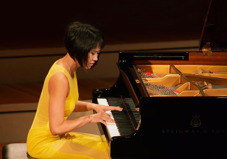 And then just as suddenly, Yuja Wang appeared in her signature bright yellow dress that showed off her brilliantly well-kept figure, did her signature bow, and sounded the first of the bell tolls which begins Rachmaninov’s melancholic concerto.