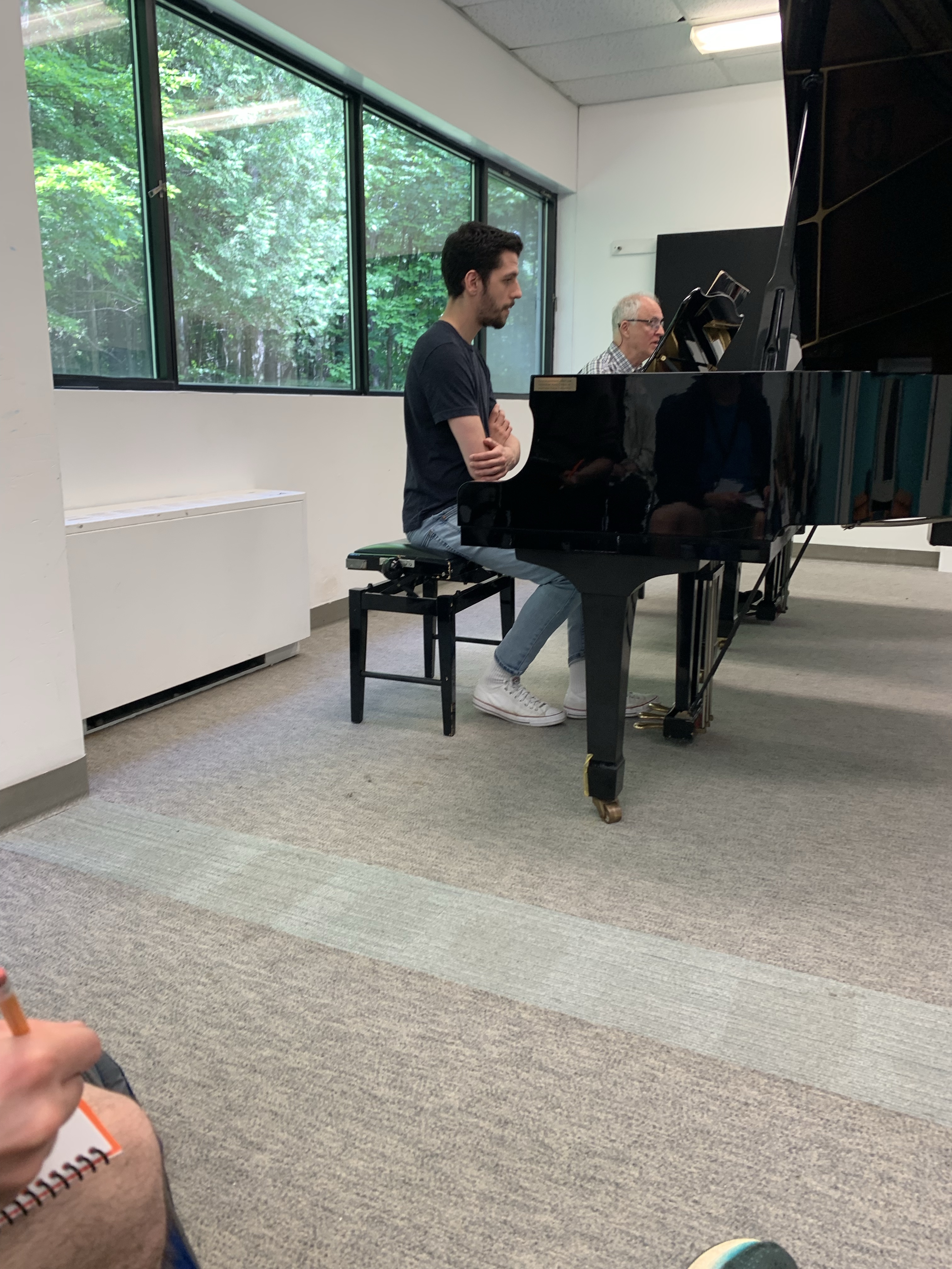 After the first movement, I brought him the notoriously difficult final movement of the Barber sonata. By then, I had already experienced ego death (not literally) and went in only with a desire to learn and not to impress. Surprisingly, Jean praised me for the work I did on the final movement. He then went on to demonstrate how despite its difficulty, the rhythm in the fugal subject of this movement is actually fun and rather jazzy. Through my lessons with Jean, I realized that having fun and enjoying playing lies at the heart of his teaching philosophy. I grew up with a musical education that stresses playing the piano is hard work. “Lift your fingers up high!”; “Pay attention to every note!”; “Press down harder with your pinky!” etc. I could feel that for Jean Saulnier, everything on the staves is a sort of musical puzzle to be solved, and years of experience in playing the piano did not mean having stronger fingers to play passages, but rather finding easier solutions to difficult passages that allow the phrases to sound more natural. Heavily influenced by the teachings of Leon Fleisher, Jean Saulnier’s vision of musicality is deeply connected with the movement of the hands. The hands should move with ease so that the phrase might flow with ease. With that in mind, he has come up with some rather esoteric fingerings which, on first try, might feel incredibly counterintuitive and different to what is on the page but that, once a lot of practice time has been invested into adapting to these new fingerings, allow the phrases to flow with miraculous ease. It was like turning water into wine, as I later told him.