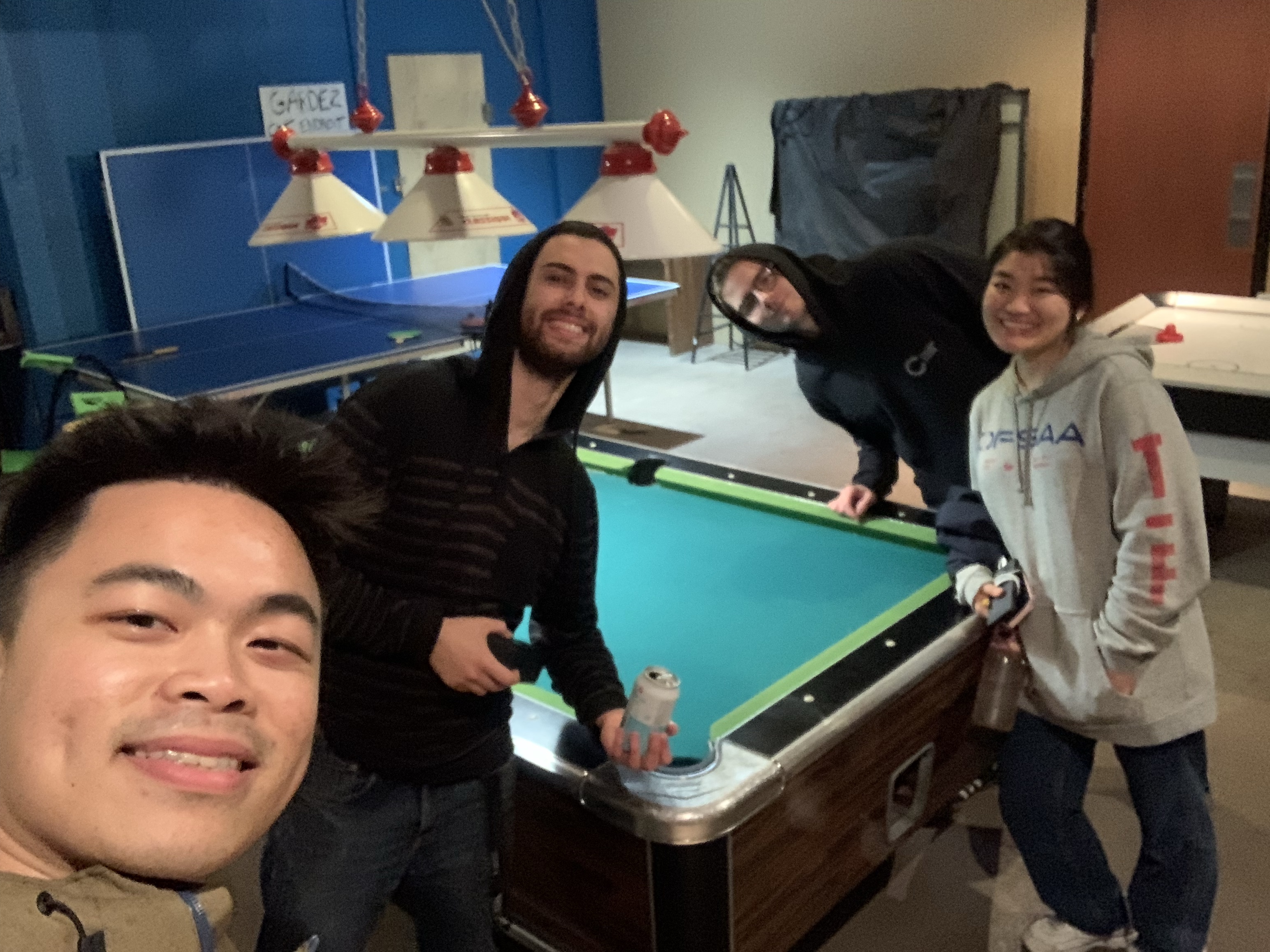 On the other side of the small room, yelping over the foosball table, were the Americans. Somehow every discussion they had was heard across the room, and every little thing excited them to no end. They would come and go in packs, and had a much wider radius of activity than the garage; oftentimes I would hear shouts coming from the dormitories through which they imported their own version of frat parties, where shots of vodka were no doubt consumed. The shouts would then be heard from a different room, like birdcalls relaying a different party with more booze. Eventually the shouts would be scattered around campus and into the night.
