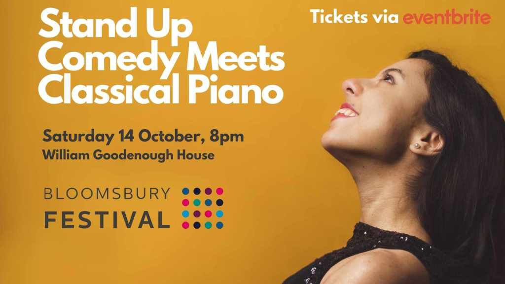 In a way, I think Aïda put herself in a more vulnerable position than most pianists normally do in a modern concert setting. We get to sit behind a score written by someone else and hide behind the notes thought out by a different person. Aïda wrote the jokes herself; she is both the composer and the performer. It takes a lot of courage to put your own work out there by yourself, and that courage was very well-received and admired by the audience of the Bloosmbury Festival that evening.