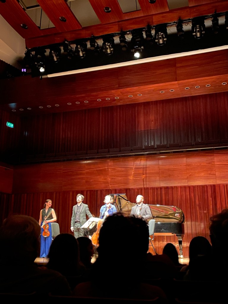 The “End of Time” Quartet contains all that. It contains a whole world of Messiaen’s expressive musical language, and the Kaleidoscope Collective really conveyed all that in their versatile playing styles. It felt like a journey at the end not because of the length and scale of the piece as a unified narrative, but because so many different things had happened that the peaceful, blissful ending felt like an ecstatic release. It really did bring me to a different place, thanks to Elena Urioste (violin) and Tom Poster (piano) who played the last movement so exquisitely and with heartbreaking emotional fragility.