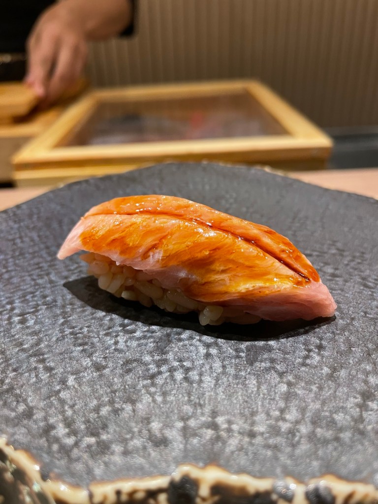 The Aka Ebi (shrimp) sushi with egg yolk shavings had an extremely interesting flavour but I thought the flavours of the two main ingredients didn’t quite match.