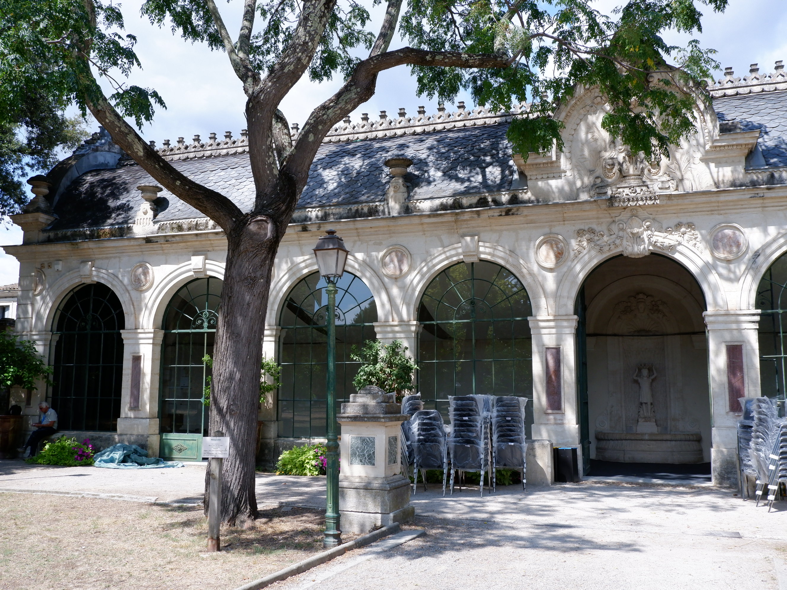 On Wednesday morning, I got up just before 3am to get to Manchester airport, where I took a flight to Montpellier via Frankfurt. A Festival volunteer, Patrick, was waiting for me at the airport, and he drove me to the Festival just in time for lunch. “Un Piano Sous Les Arbes” is a festival located in a heritage-protected park in the village of Lunel-Viel. The large, 19th-century stone building by the park gates which must’ve been some sort of municipal building back then acted as a temporary kitchen as well as housed the dressing rooms for all the artists. Bridget and my “artiste loge” was a conference room with a tiny fridge stocked with refreshments for our use. During the Festival, they would have a private chef set up at the temporary kitchen who would cook for the volunteers and the artists.