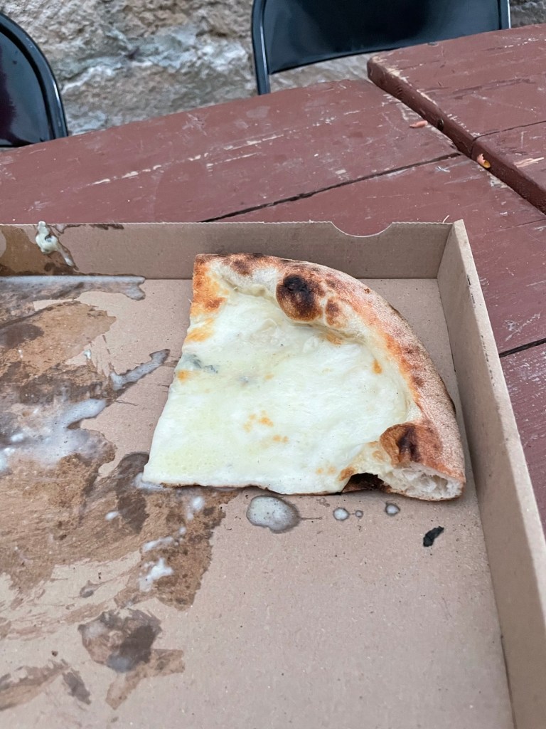 Bridget arrived late afternoon, flying all the way from Aspen in the US, and a volunteer drove us back to the Festival venue where I tasted some of the most incredible pizzas I’ve ever had. Ironic, I know, since we’re in France, but if you’d tried that very unique-tasting three-cheese pizza in which one of the cheeses was some sort of Brie or Gorgonzola cheese, you would say the same. I still have the taste in my mouth as I write. It will forever become mingled with my memories of Lunel-Viel.